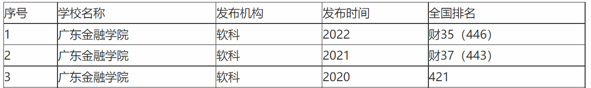 在软科大学2022排名中,广东金融学院排在446位,相较于2020、2021年位次变化不大。