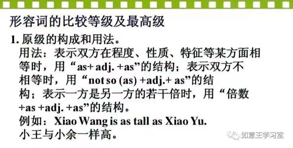 今天我们先来讲一下形容词原级的用法,下周我们讲形容词比较级和最高级的用法。