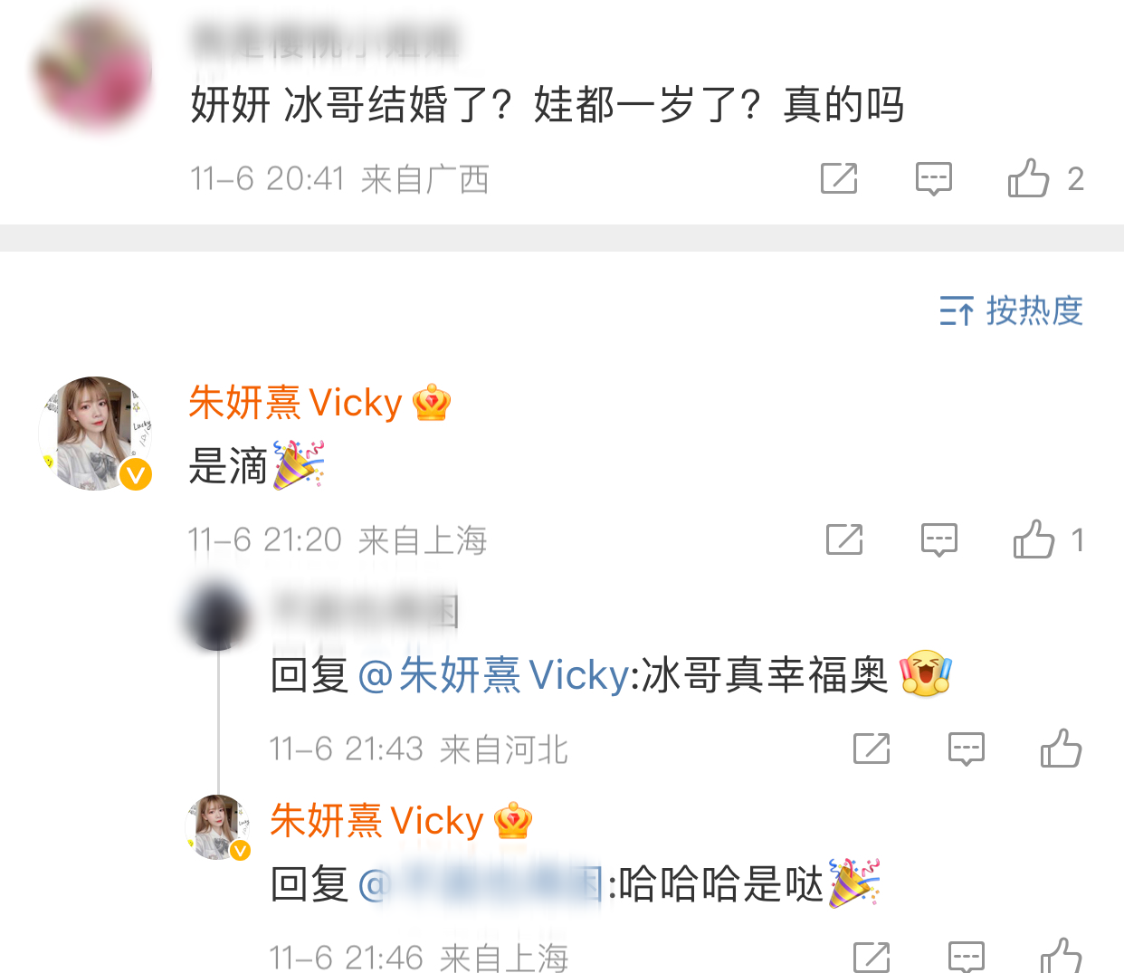 有网友向妍妍求证,她承认了白冰结婚一事,也表示那个一岁的小朋友的确是白冰的儿子。