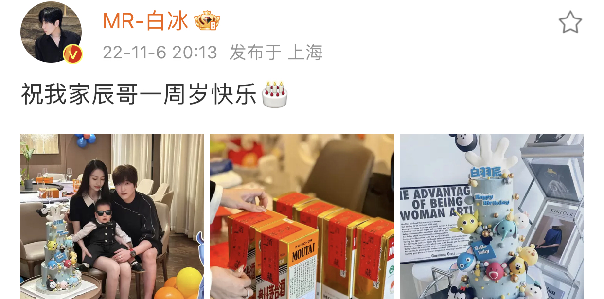 白冰宠溺地说:“祝我家辰哥一周岁快乐。”从蛋糕上的字可以得知,白冰的儿子名为“白羽辰”,名字寓意很美好。