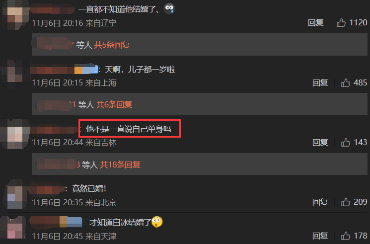 白冰结婚生子已是不争的事实,粉丝们在惊讶之余,还质疑道:“他不是一直说自己单身吗?”