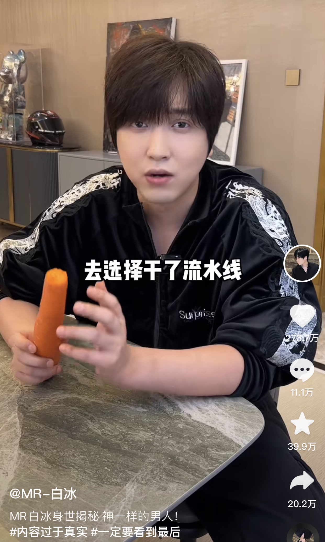 白冰是某短视频平台上的头部美食博主,他拥有近三千万的粉丝,经常开着豪车在上海等地的高档餐厅探店,年仅29岁就年轻有为,成为人生赢家。