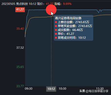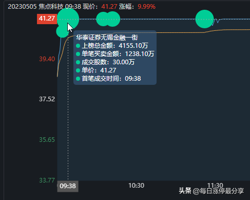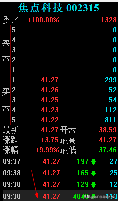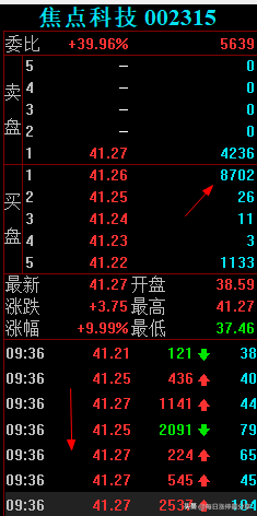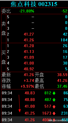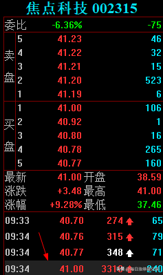 封单没有及时跟上,涨停板很快被资金砸开,9:36分,该游资在涨停板低一分钱的41.26价位挂上2053手。