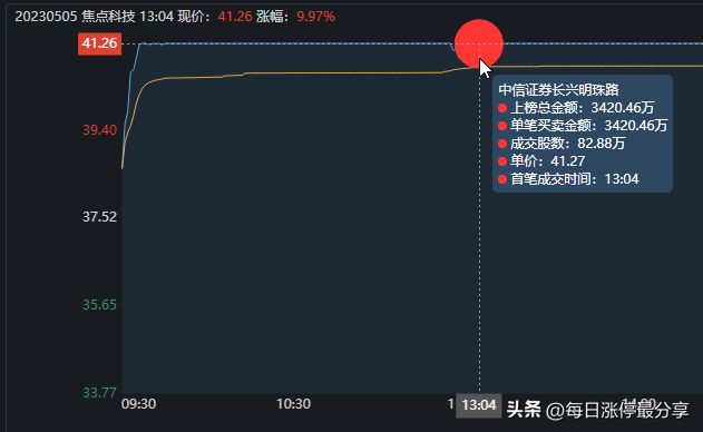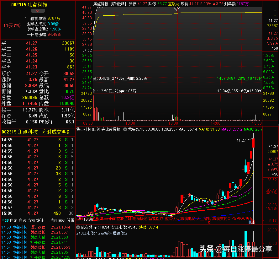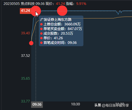 5月4日,焦点科技收了一个烂板,尾盘差点不能涨停收工。(没放巨量)