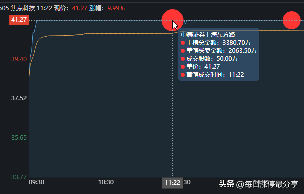 龙虎榜前五买家共买入1.62亿,占比14.79%,其中广发上海东方路买入3660万,中泰上海东方路买入3380万,机构买入2978万。(龙虎榜也是吸引资金接盘的工具之一,龙虎榜数据是盘后四点半左右交易所更新,随后各大软件商二次加工,里面有水分,看看就行了,别当真,而我也水平有限,只是数据的搬运工)