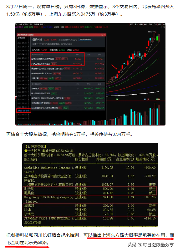 他们是谁呢?前面专门写了一篇分析席位的文章,结合龙虎榜和十大股东数据,得出的答案是毛老板。(有兴趣的朋友可以看看前面的文章,里面还分享了三亚迎宾路、杭州隐秀路、上海源深路等席位)