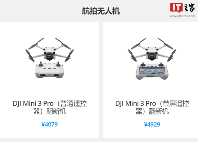 DJI Mini 3 Pro(普通遥控器)翻新机 4079 元,全新价 4788 元,便宜 709 元