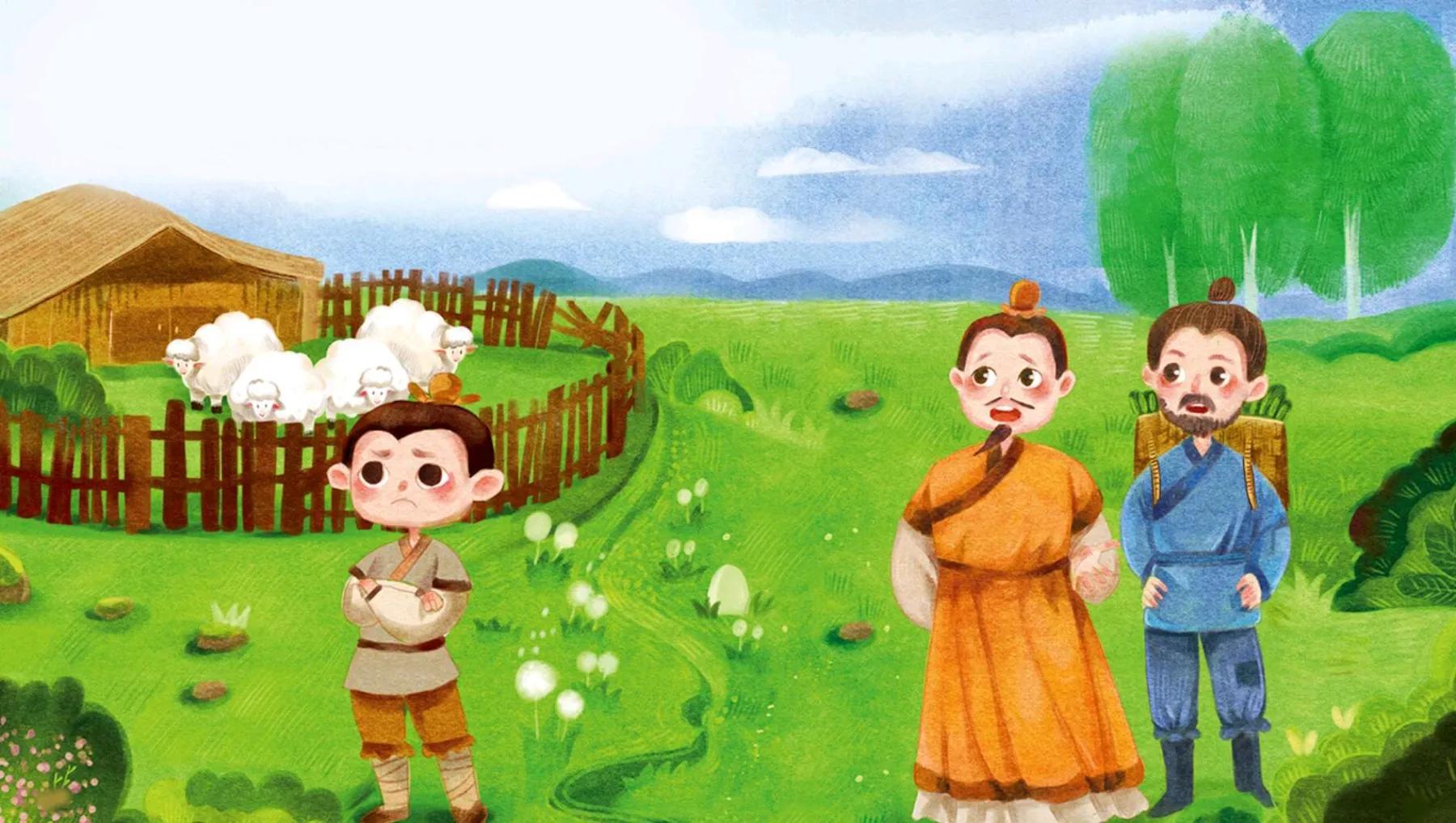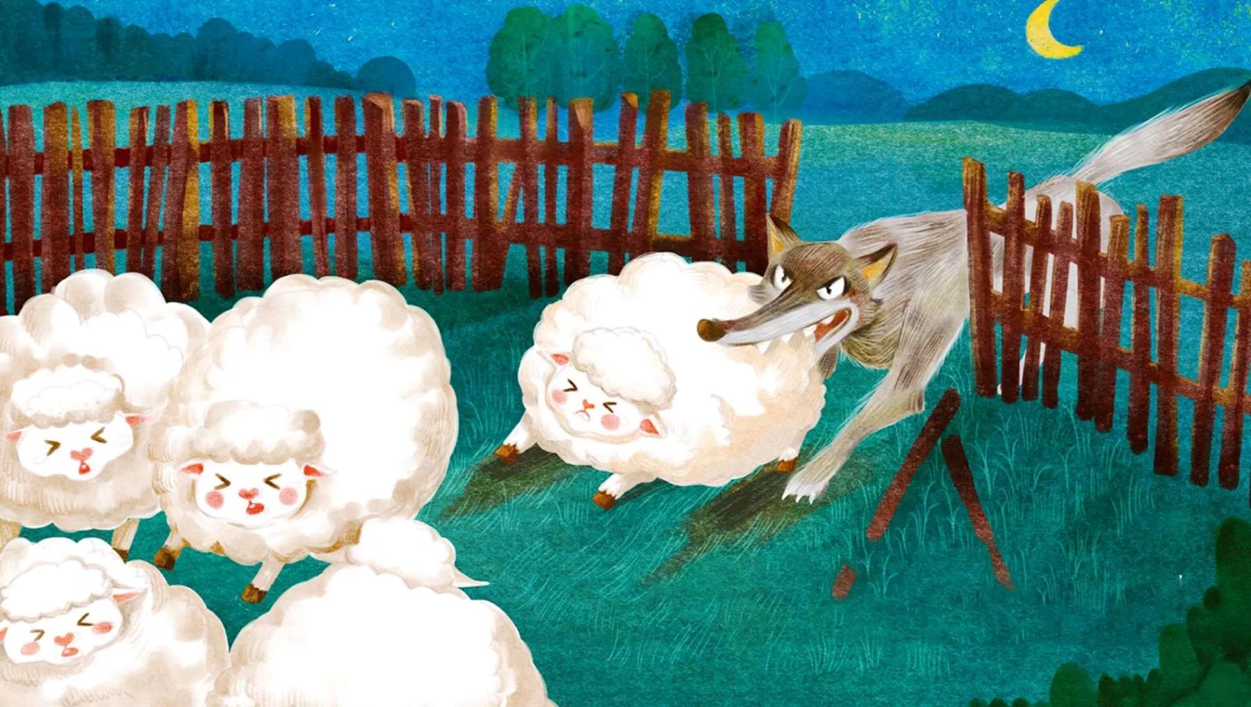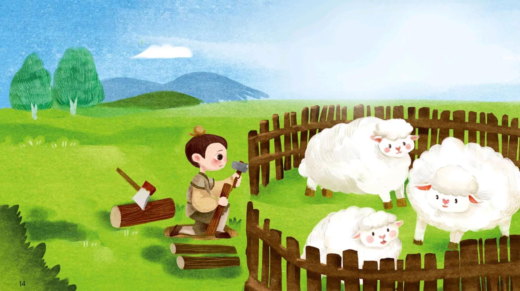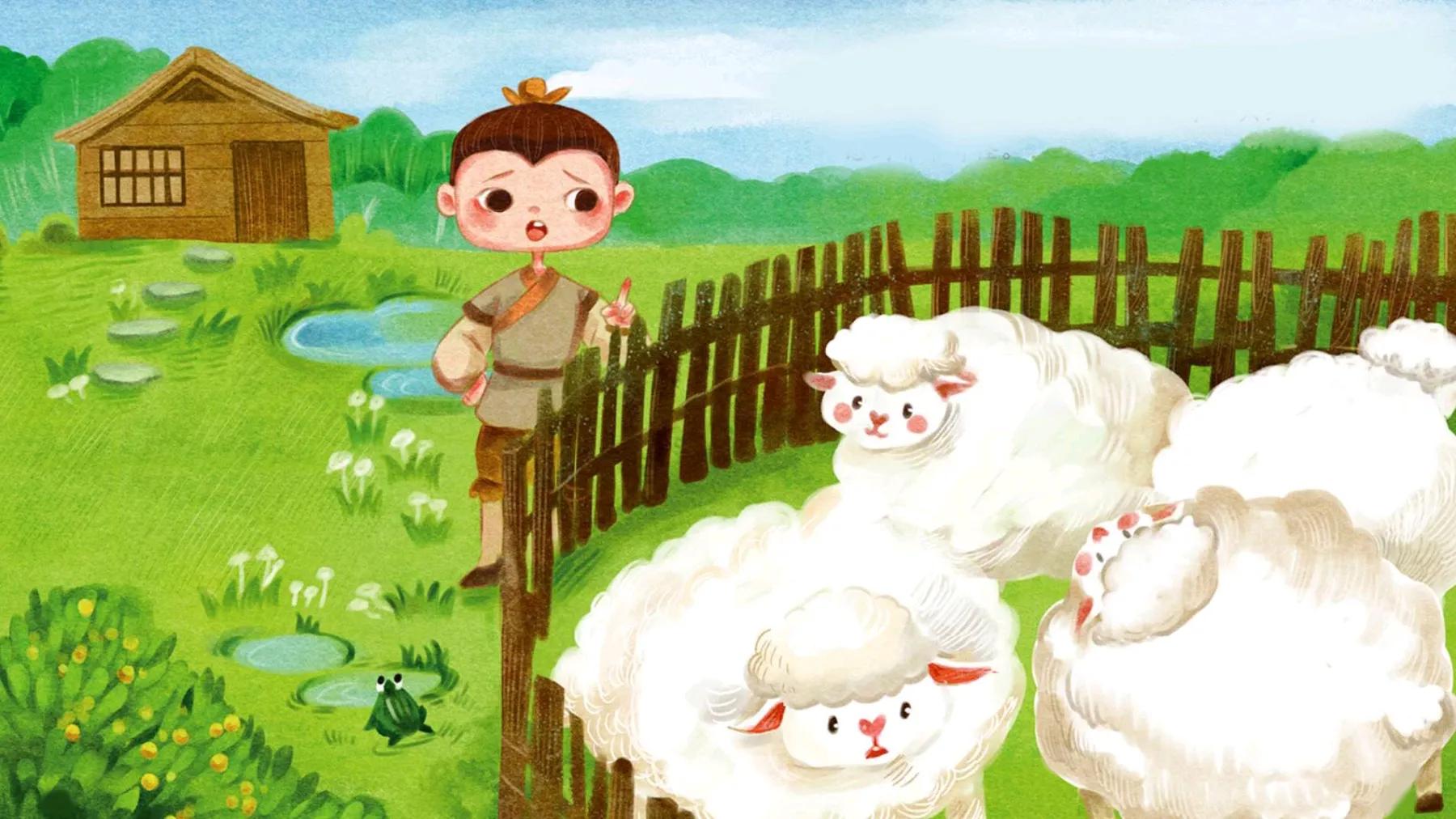 这一天早晨,他要出去放羊的时候像往常一样数了数,发现羊少了一只,他围着羊圈转了一圈发现羊圈有一个窟窿,窟窿边上还有些血迹,这个时候他的邻居出来看见了就说“肯定是被狼叼走了,赶快把窟窿堵上吧,不然羊还会丢的。”