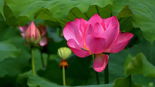 夏季是荷花盛开的季节,烈日炎炎下,碧波荡漾的湖水、青翠碧绿宽大肥厚的绿叶、亭亭玉立的荷花,给人们送来了一抹清凉。