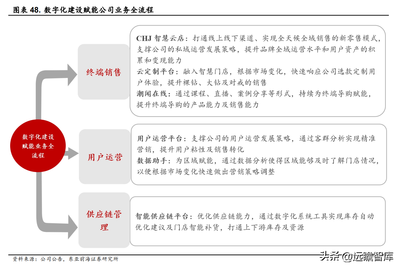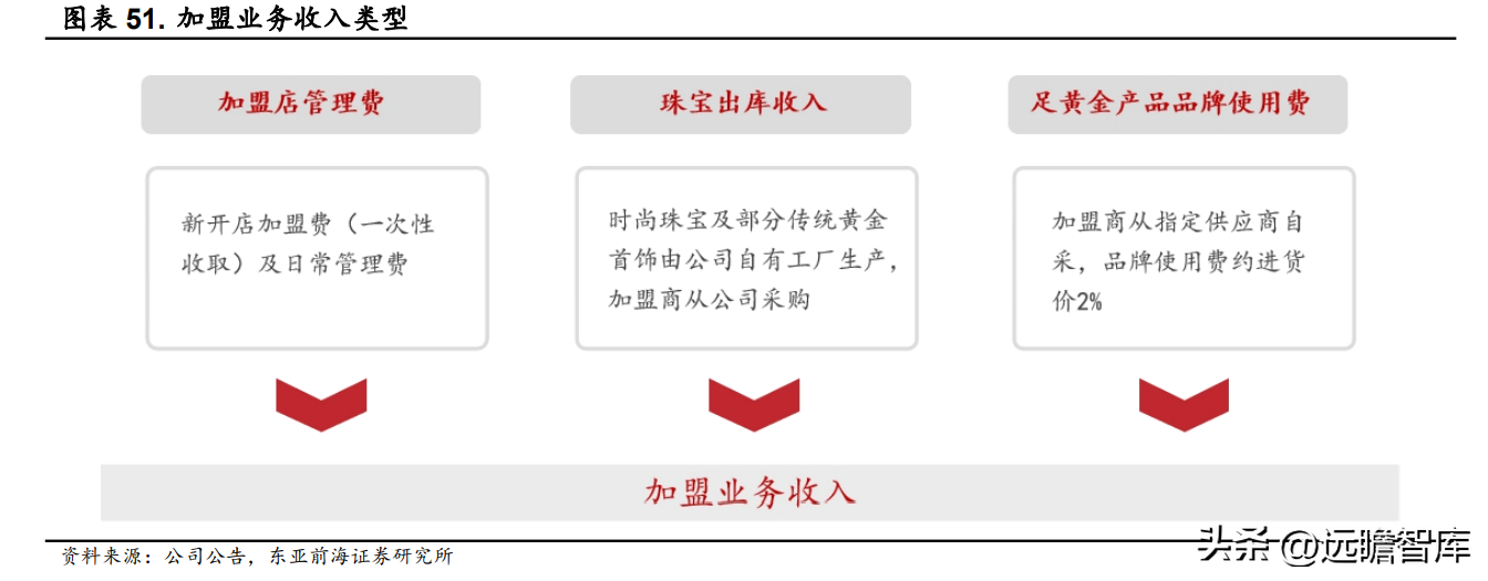 以先进的数字化建设为基础,公司自 2020 年起调整渠道策略切入轻资产运营快车道。尽管现阶段珠宝品牌竞争主要以渠道扩张为主要手段,公司长期在加盟扩张上保持较为谨慎的态度对加盟管控比较严格,管理强度上基本等同自营门店,加盟商的库存数据、销售数据都需录入公司 SAP 统,公司可以随时查询加盟店的库存和销售情况。