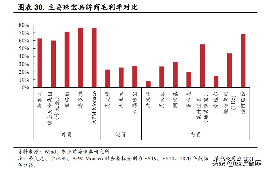 从珠宝首饰行业的产业链来看,品牌商环节利润丰厚、集中,品牌护城河深厚。