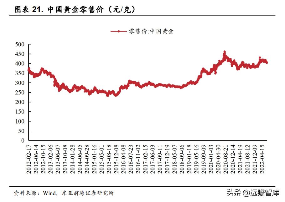 4)金价持续走高背景下黄金投资价值突显,短期价格回落或促进消费需求;