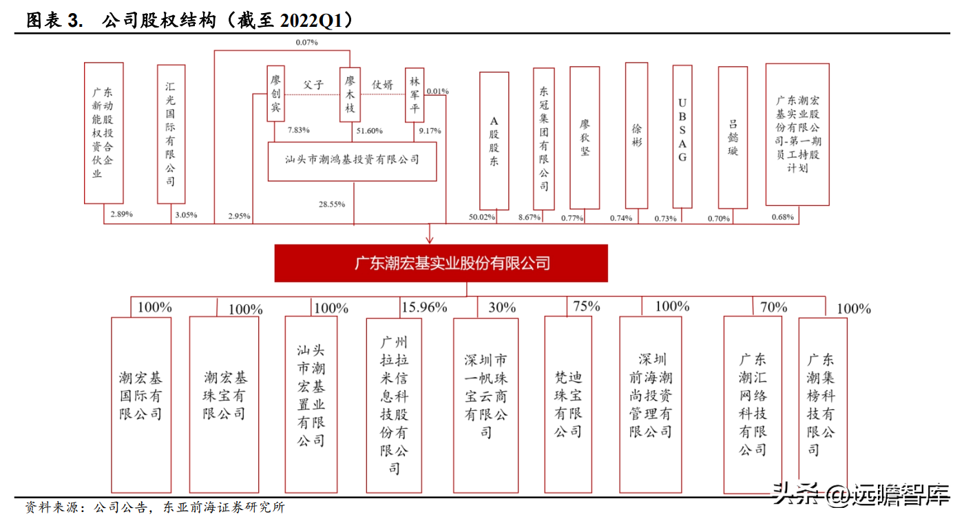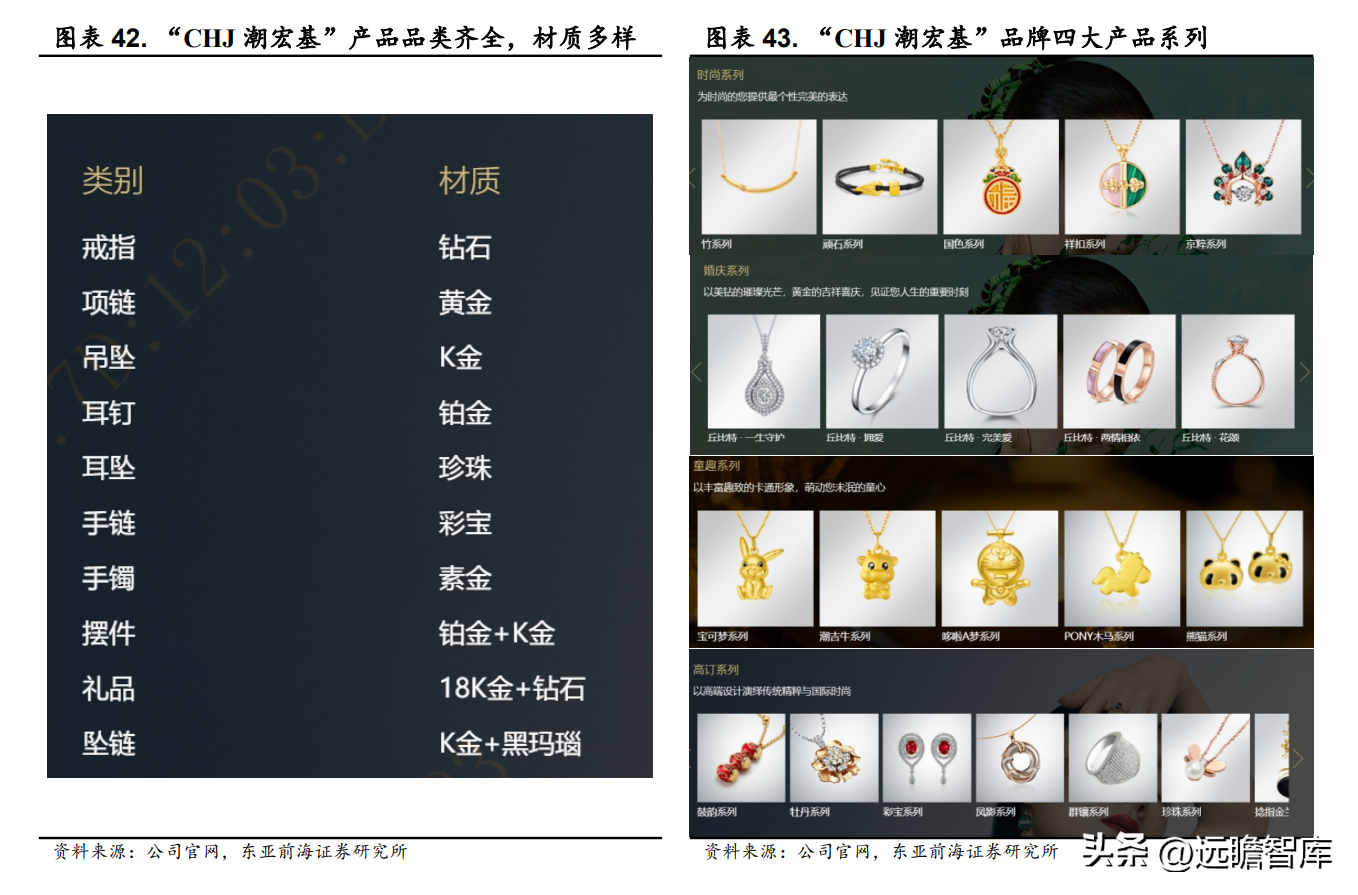 公司主营两个珠宝品牌,“CHJ 潮宏基”产品矩阵丰富,依托时尚设 计、K 金材质实现差异化竞争。