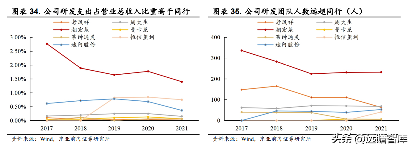从外部评价来看,公司及其产品设计、工艺创新屡获认可,如在 2020 第 5 届“天 工精制”大奖赛中,潮宏基《中国牛》摆件荣获“最佳市场应用”奖、《花丝糖果》荣获“最佳文化传承”奖、《硬提梁煮水壶》摆件荣获白银组第一名。