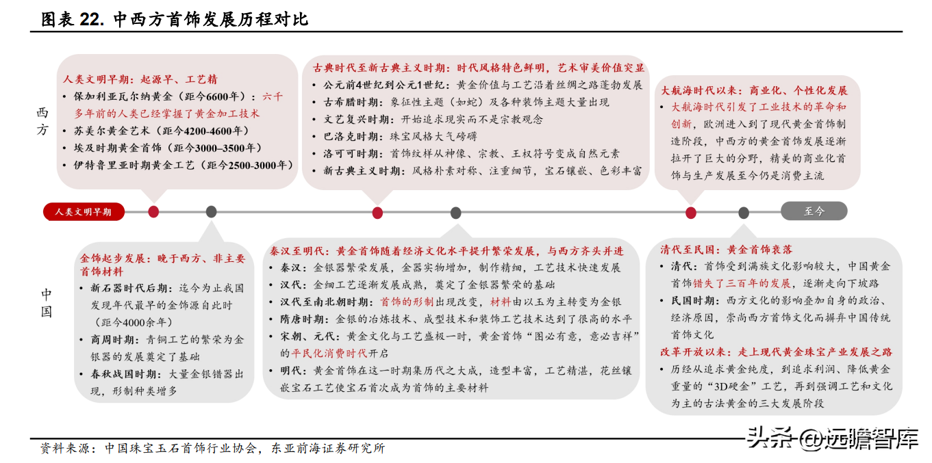 从行业发展历程来看,我国黄金首饰发展在清代、民国时期曾错失过数百年发展,随着经济文化水平提升,以黄金纯度为主要追求的下游消费需求正悄然改变。