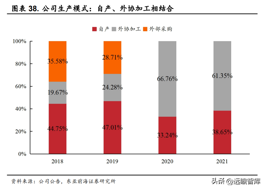 相比研发生产均由外包完成的行业普遍现象,公司始终保留自有产线且每年自产比例超过30%,足见其对产品设计研发、工艺传承创新的重视。