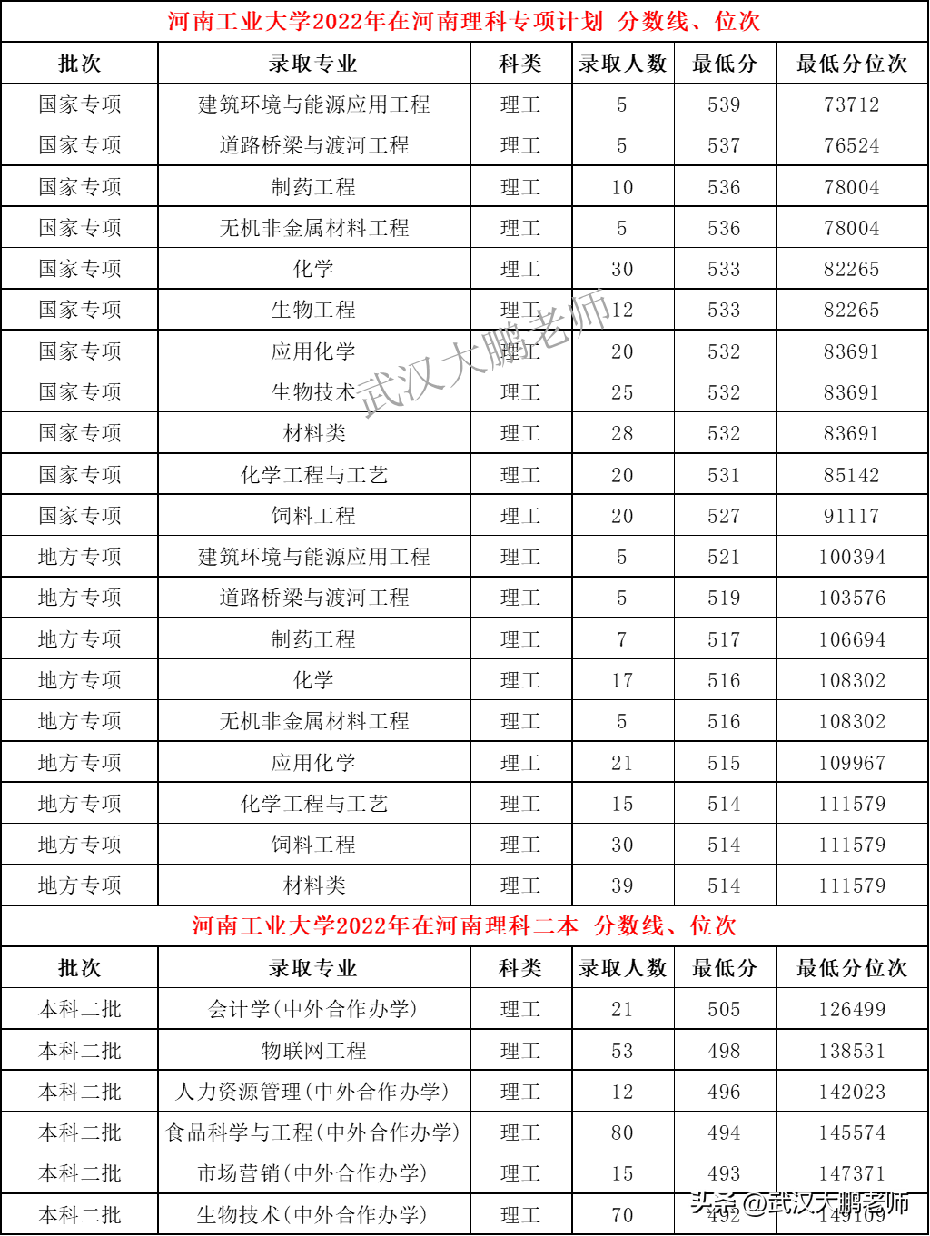 河南工业大2022年在河南理科分数线、位次值普通一本类
