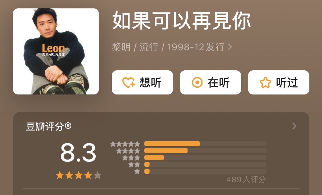 而评价最高的专辑是《如果可以再见你》,豆瓣8.3分。