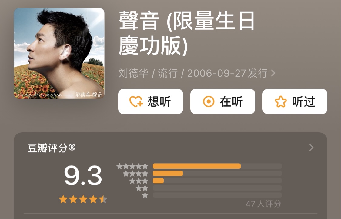 不过刘德华评价最高的一张专辑是一张小众的音乐专辑《声音》。