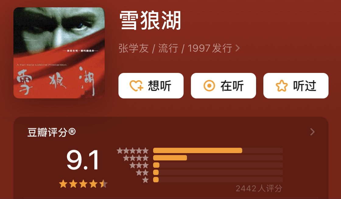 于是张学友希望来一点不一样的音乐,《雪狼湖》诞生了。