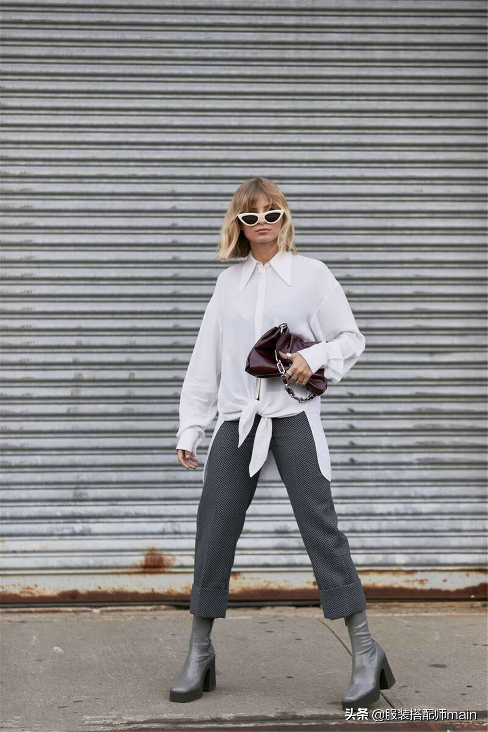 白色上衣与灰色长裤搭配可以打破沉闷颓丧的氛围,增加活力,有利于改变人的精神面貌。