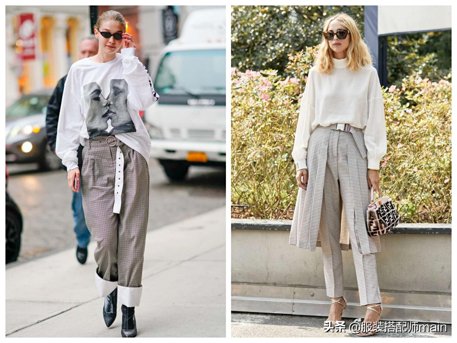 同色系搭配,灰色裤子搭配灰色上衣是最不会出错组合方式,干净淡雅的颜色尤其适合轻熟姐姐选择。