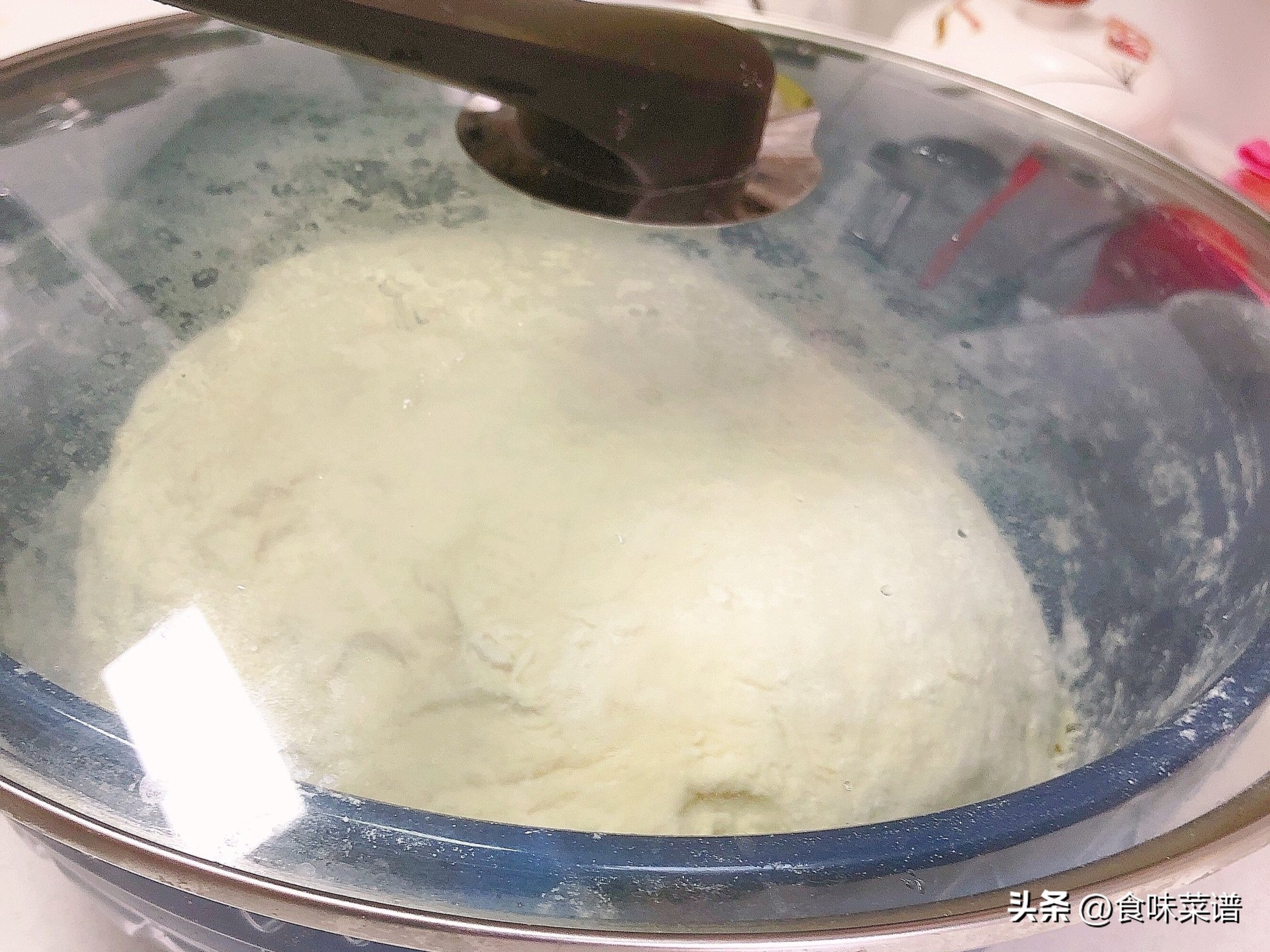 2、发面时间不要太久,大概一个小时就可以,盖上锅盖或铺一层保鲜膜,夏季常温发酵,冬季放在温暖处,需要注意,如果发酵时间过久,会导致面团发酸。