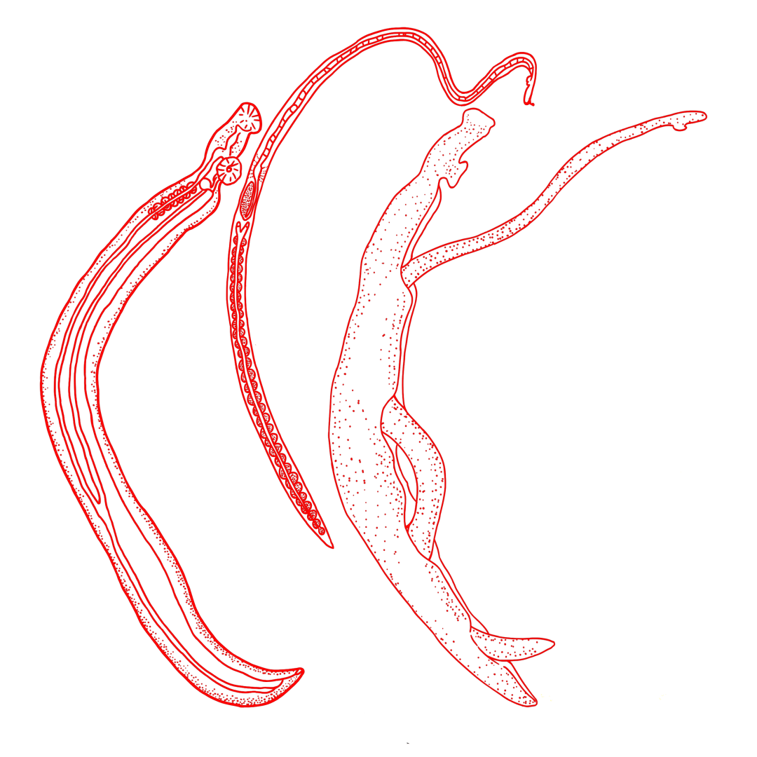 左为雄虫,中间为雌虫,右为雌雄合抱状态