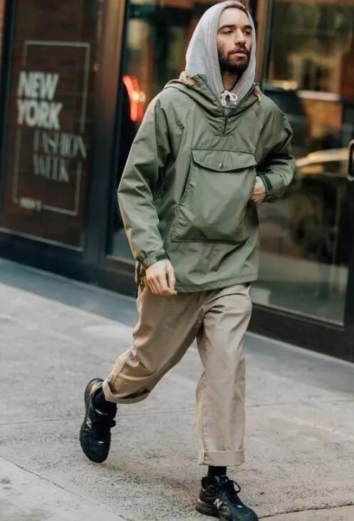之前介绍过,老绿色是一种很有复古感的颜色,搭配起卡其色可以很轻易带出年代感,再配上当下时兴的卫衣款式,简直就是时尚感和高级感的完美结合。