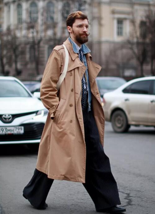 除了高级感,卡其色大衣还可以往工装风走,比如多设计几个口袋,叠穿出分量感,让你的造型看起来很硬气。