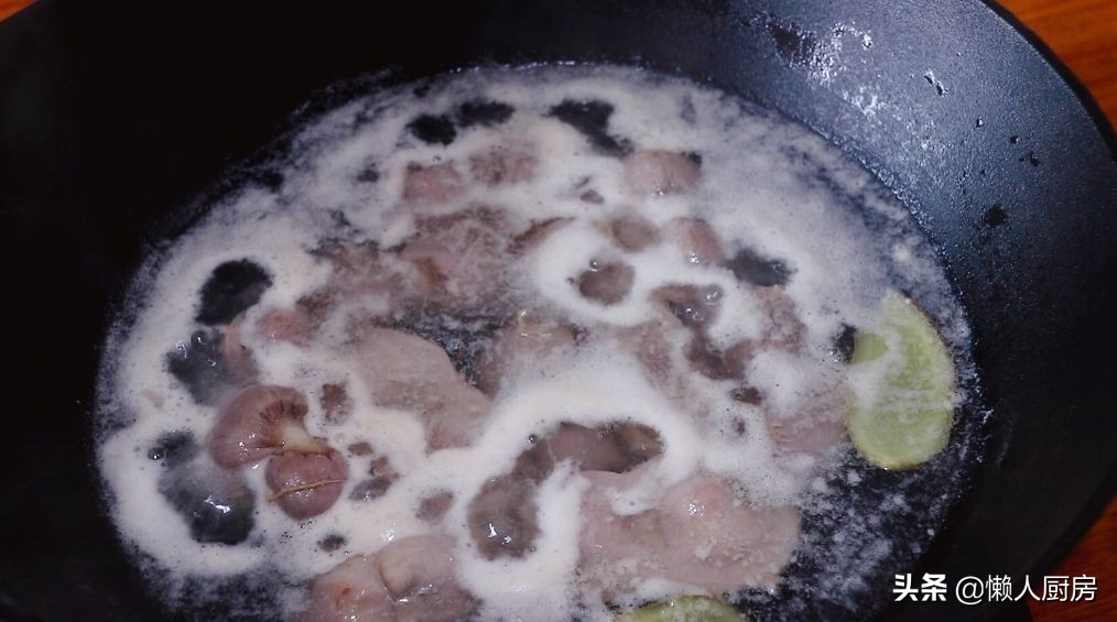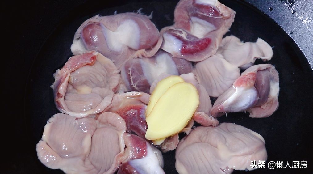 用清水清洗干净鸡胗,鸡胗不需要打花刀,整块的就可以。将清洗好的鸡胗冷水下锅,加一点料酒和姜片去腥,把鸡胗焯水。