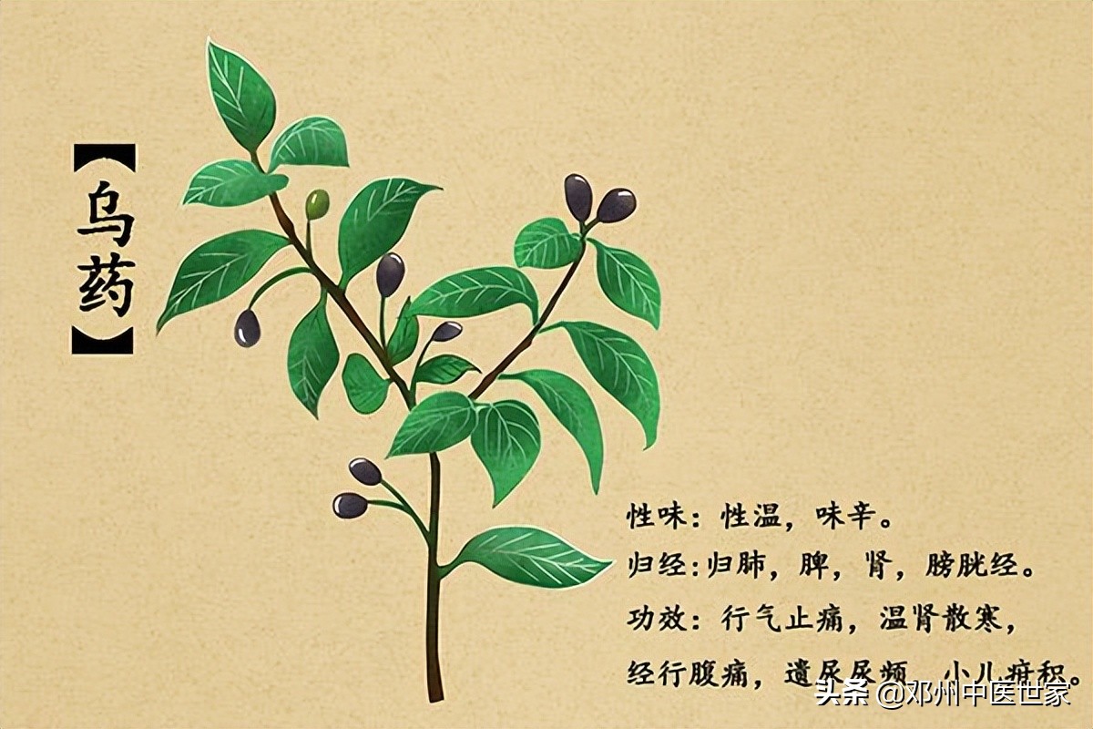 [歌诀]乌药辛温,心腹胀痛,小便滑数,顺气通用。