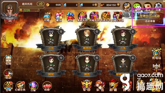 打开活动界面后可以看见三个巨人矗立在界面中心,这就是可恶的巨人了,只要点击任意一个巨人,就可以对巨人发起进攻了