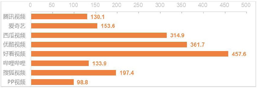(2)8款App后台静默12小时,上传数据流量平均???最多的为好看视频,约为458KB;平均最少的为PP视频,约为99KB。具体情况如图2。