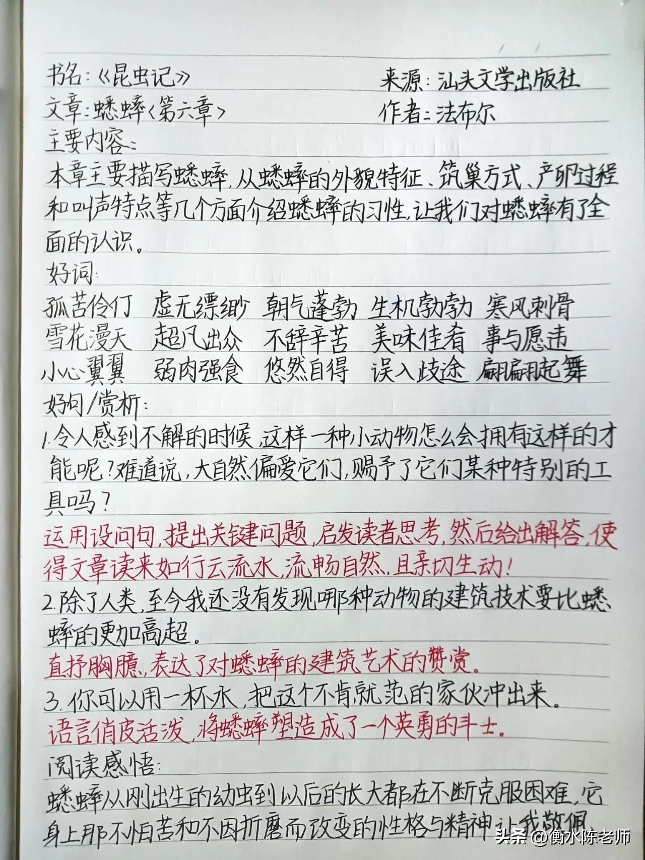 名著阅读《昆虫记》,纯手工手抄笔记,重点难点全部在这套笔记里面,内容涵盖重要考点,热点典型考题,读书笔记,资料非常全面,细致,由于资料较多,只能发布一部分,需要全部的和我沟通即可 昆虫记 昆虫记读书笔记 昆虫记读后感