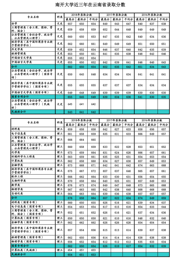 南开大学在云南省录取情况: