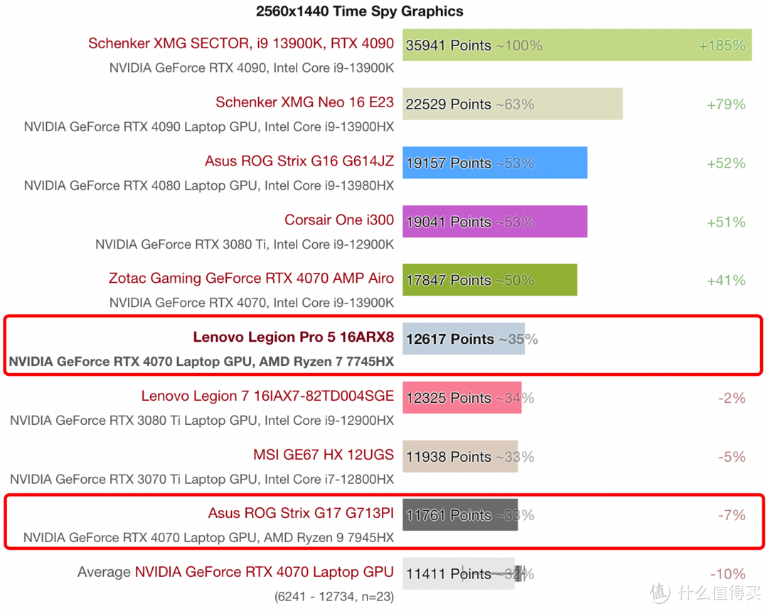● RTX4070 Laptop:比同品牌/机型4060款贵两三千(约35%),性能强约37%;略大的价格差距下,4080比4070强出近70%!减钱4060、加钱4080都是更好的选择。