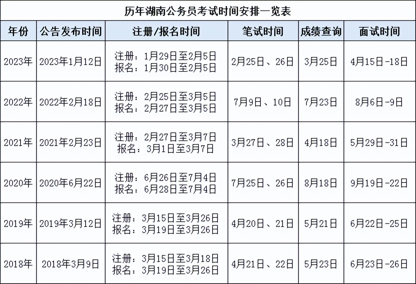 参考近几年考试时间,除了2020年因新冠疫情影响推迟至7月份启动,其它年份考试时间一直比较稳定,而且每年都参加多省公务员联考。由此推测:2024年湖南公务员考试预计会在2024年2-3月份启动,具体时间以官方发布的公告为准。