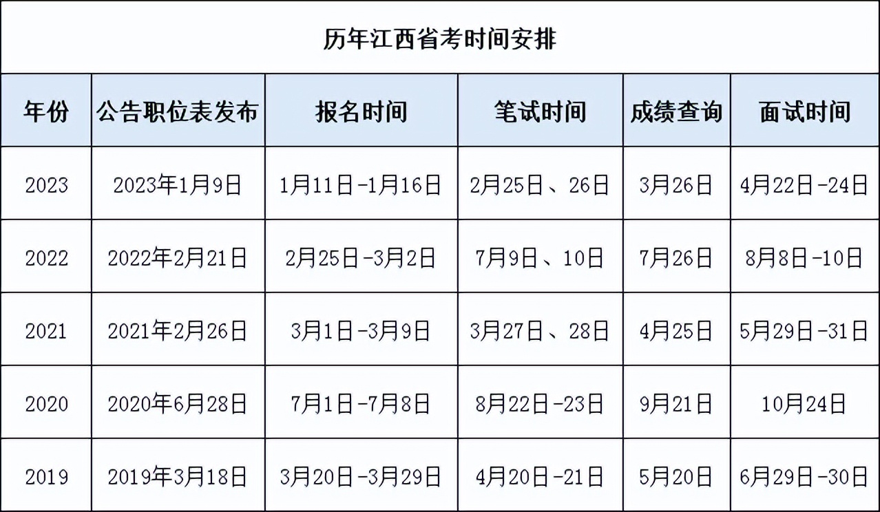 以下为近几年江西公务员考试时间节点安排,供参考。
