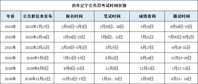 以下为最近几年辽宁公务员考试时间安排,以供参考。