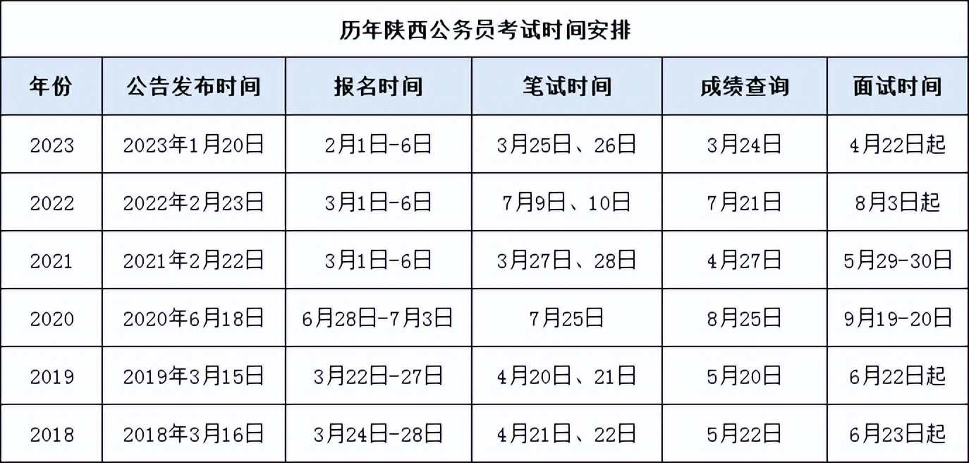 2024年陕西公务员考试时间尚未确定。参考上表,除了2020年因疫情原因推迟至7、8月份举行,其他年份陕西公务员考试时间比较稳定,且近几年多次参加了公务员联考,笔试时间与联考时间一致。2024年陕西公务员考试公告预计会在2024年1-2月左右发布,参加多省公务员联考。