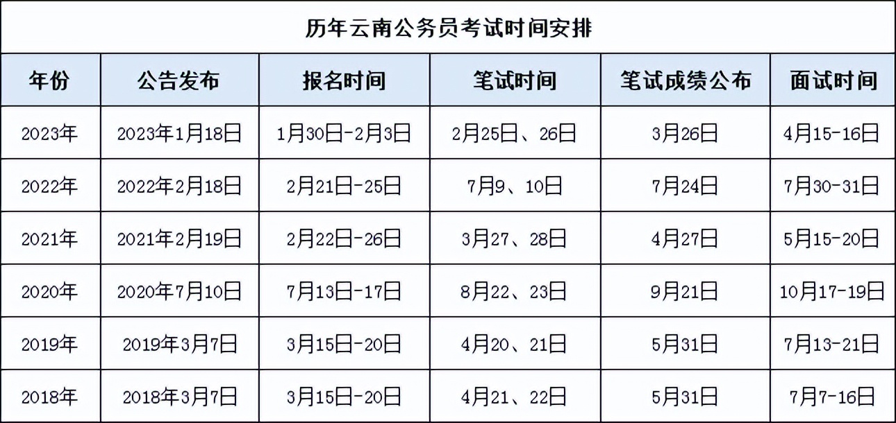 近几年受疫情影响,云南省考时间不是很稳定,但是一直都参加多省公务员联考,如果2024年云南省考继续参加多省联考,那公告和职位表预计会在2024年1-2月份发布。