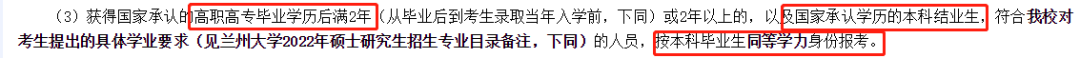 专科毕业满2年及以上的,以及国家承认学历的本科结业生,须符合以下所有要求,按照本科毕业同等学力身份报考。