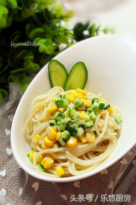 玉米意面沙拉,没什么厨艺的朋友都可以试做,零失败。口感非常清爽,特别适合夏天。