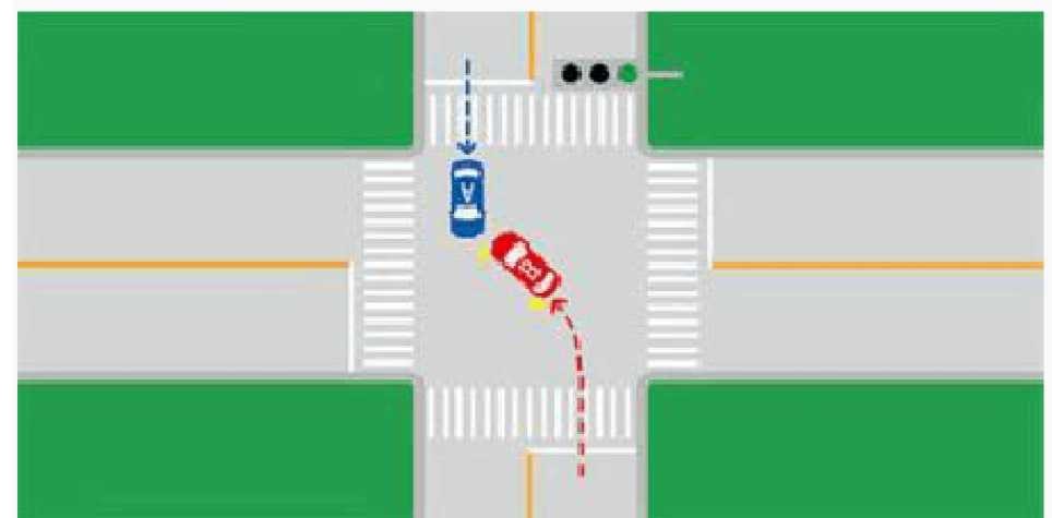 分析:根据路口信号灯,虽然B车可以左转,但应该避让可以直行的A车。