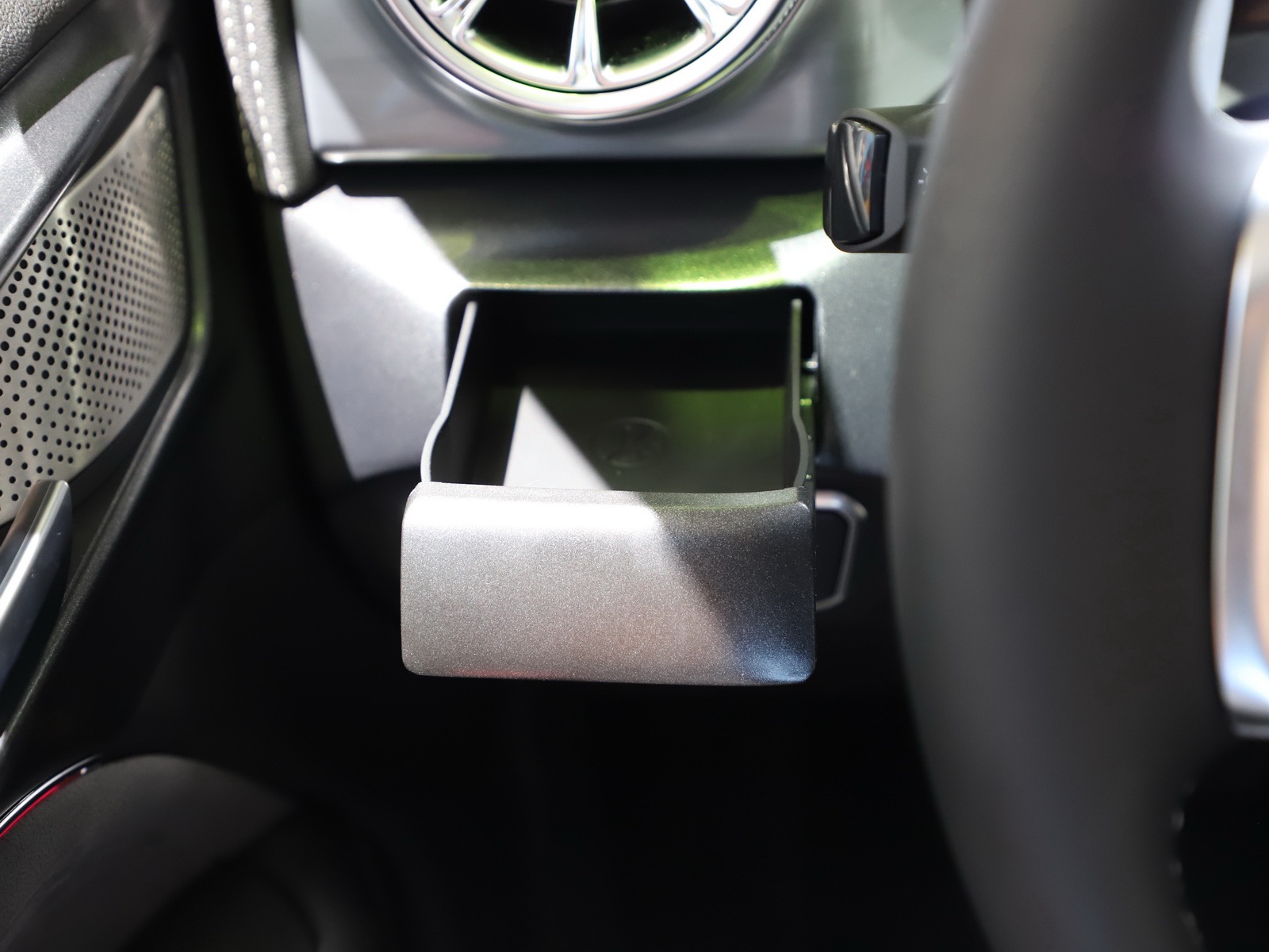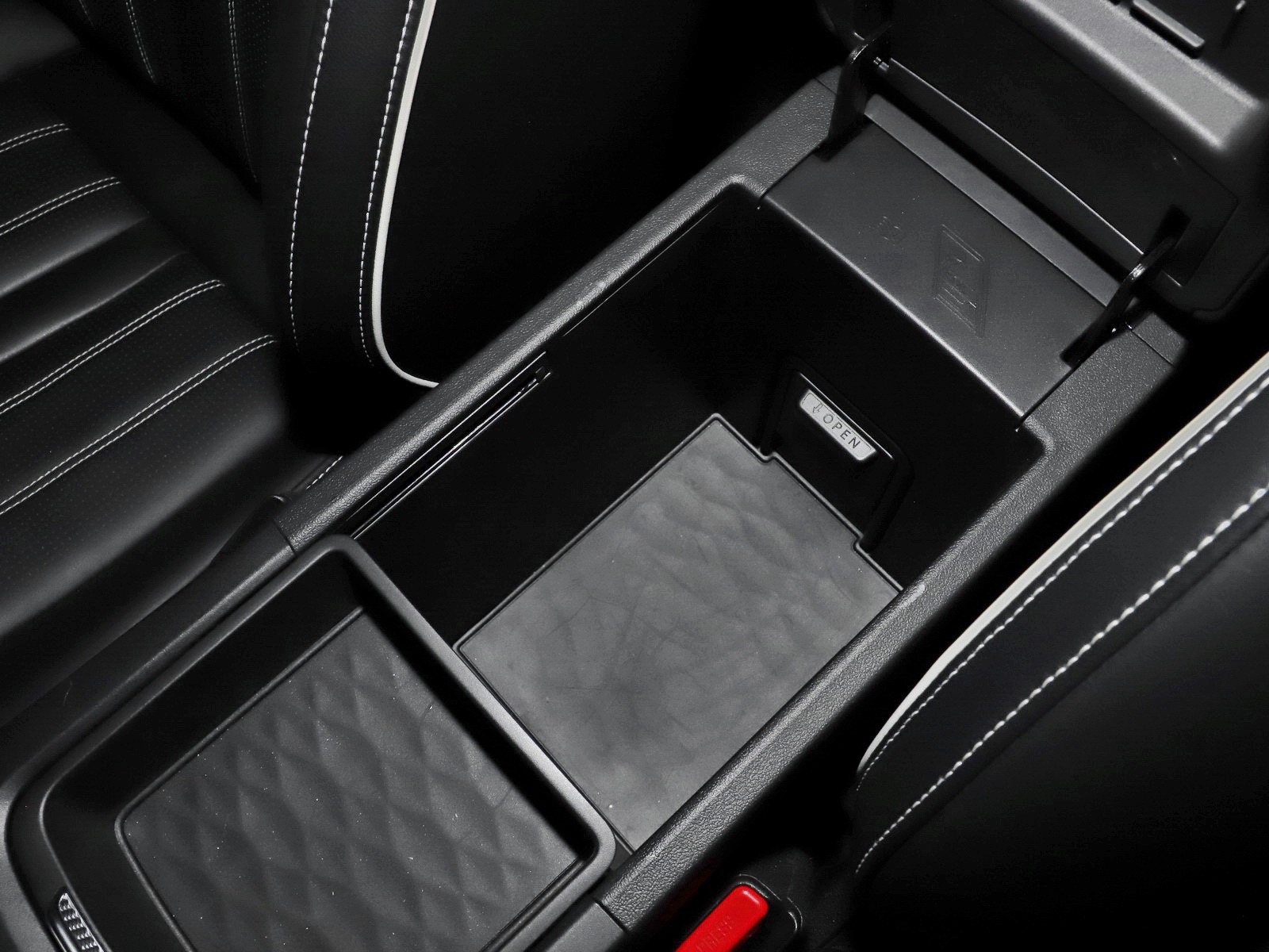 储物空间方面,虽然样式很多,有中控台一体的大储物格和两个杯架、门板侧的空间、存放手机的格子、挂钩、还是驾驶位侧的小票据格,但实用性个人感觉用处不大。比如放手机的格子并不是全平的状态,里面还带一些菱形凸起的条纹,手机放在上面并不能放平,也没有无线充电的功能。