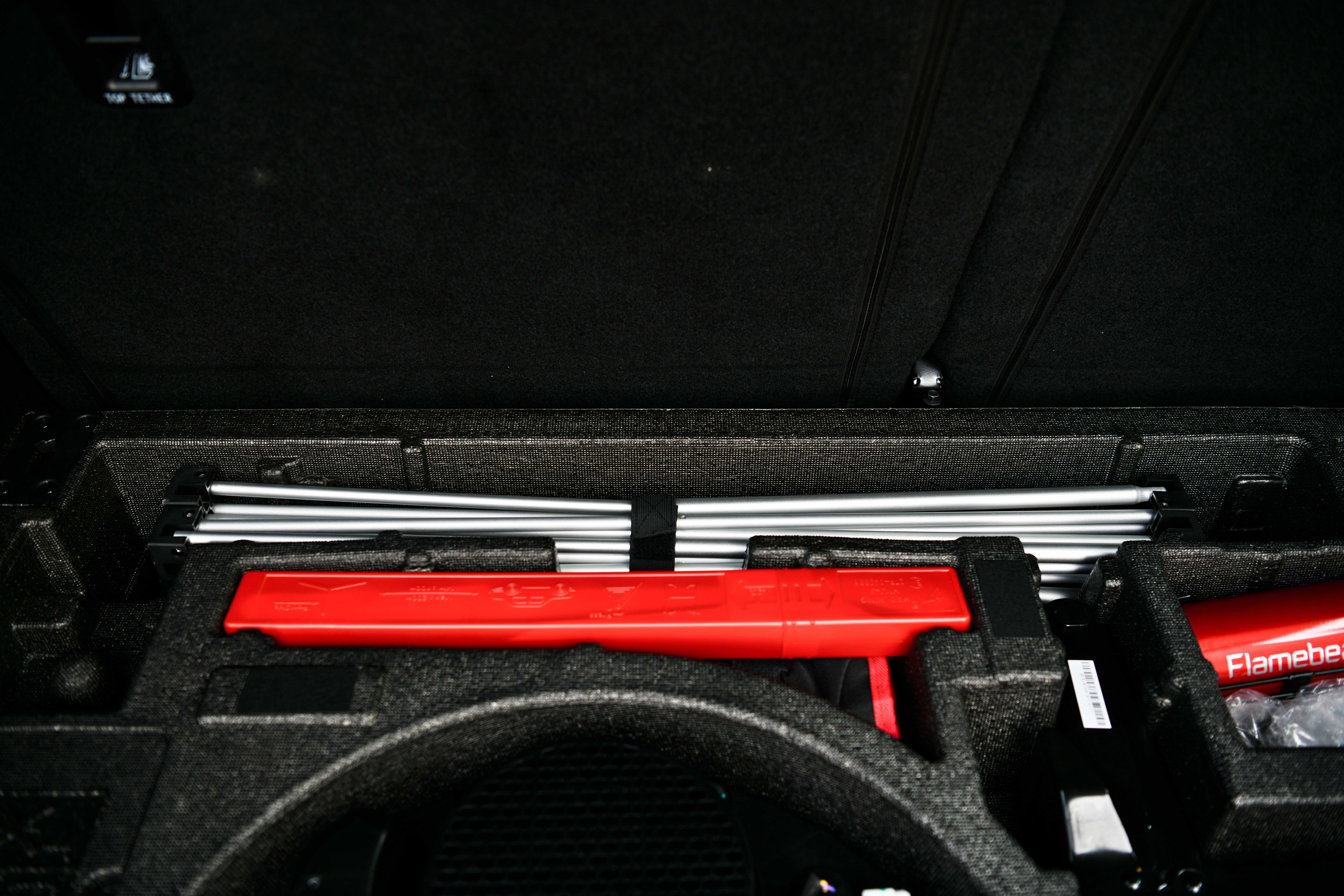 对了,我有给大家介绍过它的隐藏小桌板功能吗?打开后备箱,掀起盖板,在底下一堆工具里找到一捆铝制支架,撑起来后盖上后备箱的盖板,就能打造出一个简易型的小桌板了,特别适合郊外野餐使用,可见坦克在营造实用性上也是花了不少心思的。