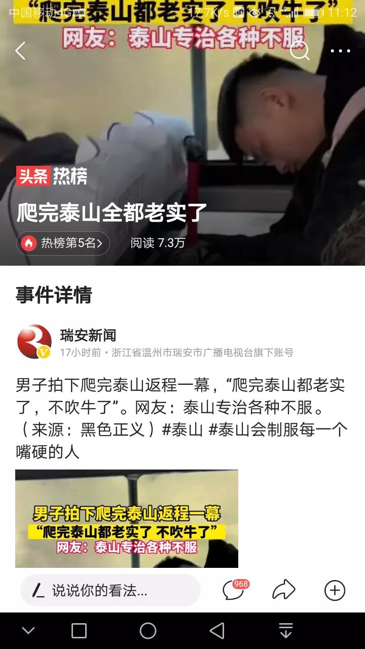 据媒体报道,男子拍下爬完泰山返程一幕,“爬完泰山都老实了,不吹牛了”。