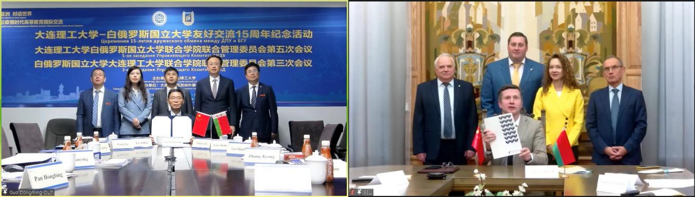 9月29日,大连理工大学-白俄罗斯国立大学友好交流15周年纪念活动及大连理工大学白俄罗斯国立大学联合学院(以下简称“中白学院”)联合管理委员会第五次会议暨白俄罗斯国立大学大连理工大学联合学院(以下简称“白中学院”)联合管理委员会第三次会议以视频会议形式在主楼512会议室顺利举办。