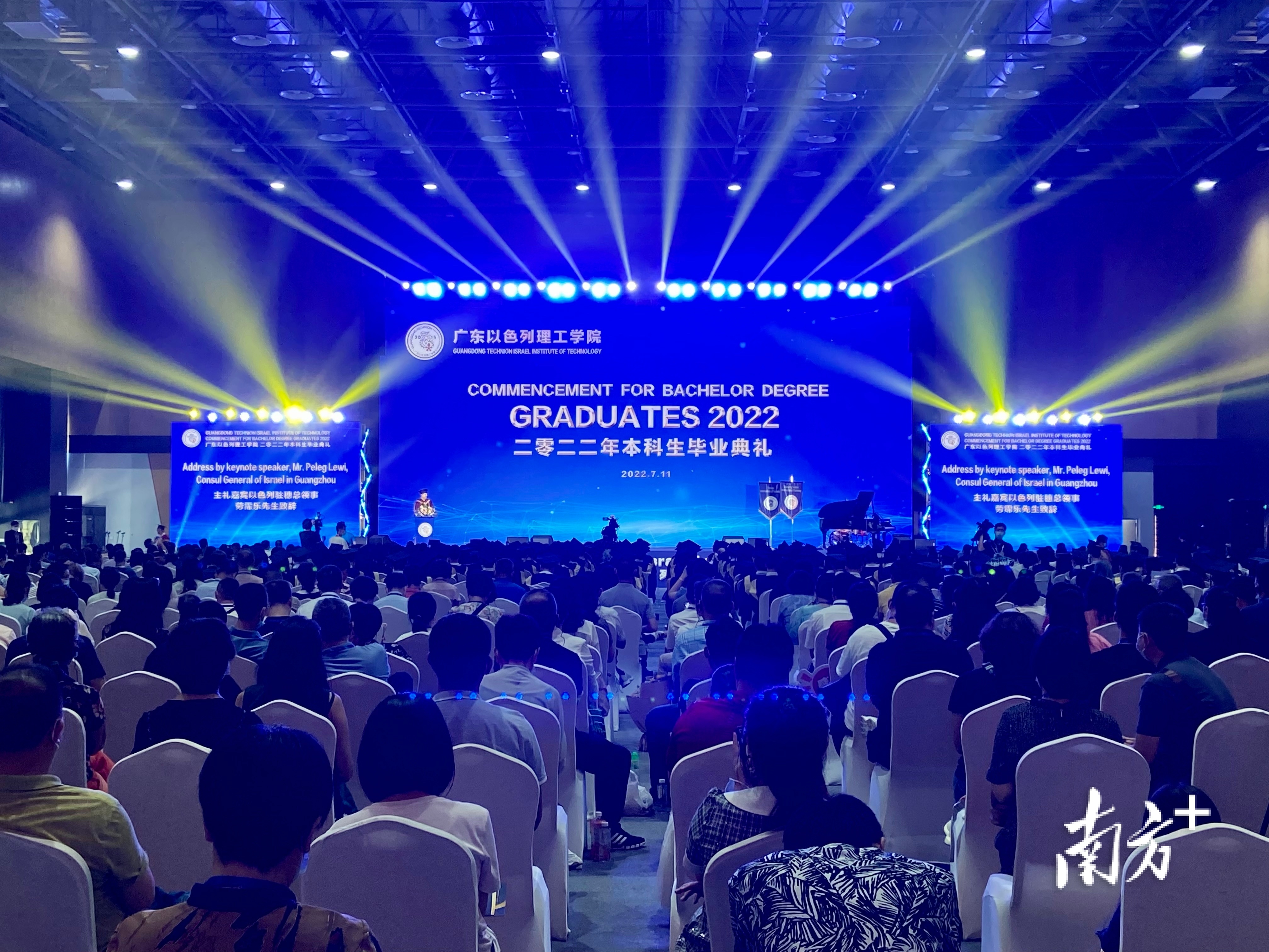 7月11日,广东以色列理工学院(简称广以)举行2022年本科生毕业典礼。南方+记者获悉,今年共有212名毕业生即将走出广以校园,开启人生新的征程,而这也是广以自建校以来迎来的第二届本科毕业生。活动现场采用“线上+线下”联动的形式,未能到校的毕业生、教职工及亲友通过视频直播的方式参加,共同见证这一重要时刻。